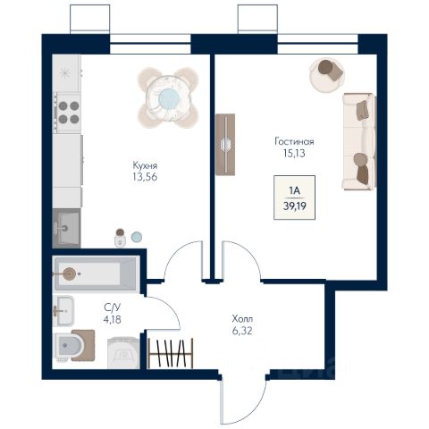 Продаётся 1-комнатная квартира в строящемся доме (Секции 1-5), срок сдачи: III-кв. 2028, общей площадью 39.19 кв.м., на 13 этаже. Новый жилой комплекс "Бархат" от застройщика "СЗ Глобалмытищи" расположен по адресу: г. Мытищи, Ядреевская улица.