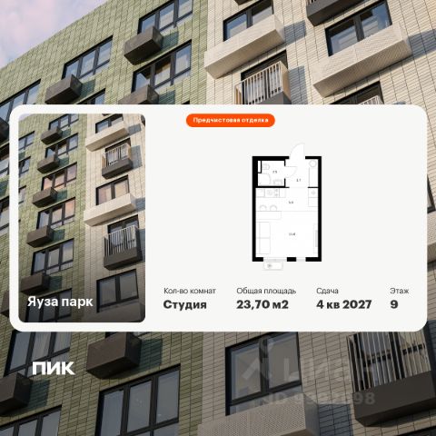 Продаётся квартира-студия площадью 20,9 кв.м на 11 этаже 24 этажного дома (Корпус 8, Секция 1) проекта ПИК Яуза парк. Светлый просторный подъезд на уровне земли, функциональная планировка, большие окна, предчистовая отделка. Жилой квартал "Яуза парк" возводится в Мытищах, в 5 минутах ходьбы от одноимённой ж/д станции. Проект включает 20 домов разной этажности с благоустроенными дворами-парками. Сейчас в квартале началось строительство новых корпусов 7-12. Это отличная возможность купить квартиру по стартовой цене. Индивидуальный дизайн фасадов разработали архитектурные бюро KATARSIS и RHIZOME. Вблизи жилого квартала появятся шумопоглощающие экраны, позволяющие забыть о том, что неподалёку находятся железнодорожные пути. На первых этажах домов откроются магазины, кафе, салоны красоты и другие полезные сервисы. Рядом есть школы и детские сады, магазины и ТРЦ "Красный кит". На территории проекта появится благоустроенная набережная реки Яузы и пешеходный бульвар для прогулок всей семьёй. Водонапорную башню XIX века, расположенную на территории "Яуза парка", мы реставрируем и создадим вокруг неё общественное пространство для отдыха жителей квартала. Для прогулок отлично подойдёт Мытищинский центральный парк культуры и отдыха, расположенный в 10 минутах ходьбы, и Лосиный остров — в 24 минутах. Дорога на автомобиле до Ярославского шоссе займёт не более 3 минут, до МКАД — 10 минут. Артикул 997012 (Застройщик ООО "Специализированный "НМ-Консалт") Квартира-студия с отделкой в городском округе Мытищах Московской области.