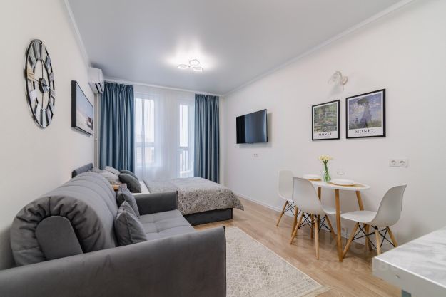 Зеленый двор с деревьями, современной спортплощадкой, турниками, тренажерами и теннисным столом. Перед домом уютный сквер со скамейками. Вход в подъезд оборудован пандусом для колясок/велосипедов/тележек/сумок/чемоданов на колесах.