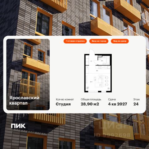 Продаётся квартира-студия площадью 27,4 кв.м на 13 этаже 25 этажного дома (Корпус 16.2, Секция 2) проекта ПИК Ярославский. Светлый просторный подъезд на уровне земли, функциональная планировка, большие окна, c отделкой. Жилой район "Ярославский" находится в Мытищах, в шести километрах от МКАД. В 15 минутах на автобусе - платформа Мытищи, а в 20 минутах - метро "Медведково". В "Ярославском" заселены 25 жилых домов, открыты четыре детских сада, поликлиника, три школы, в том числе одна из самых больших в Московской области. Работает спортивная школа с инклюзивным образованием. Скоро будет построен детский сад на 300 малышей и пешеходный бульвар. Кроме того, на территории проекта появится уникальная игровая площадка - PlayHub "Акведук". Гулять здесь одинаково понравится как детям разного возраста, так и мамам с колясками. Главные объекты на площадке - двухуровневые игровые акведуки с башней, горками, песочницей и лазилками. Вокруг "Ярославского" четыре лесопарка, поблизости благоустроенная набережная реки Яузы и Рупасовские пруды. Мытищи - развитый город рядом с Москвой: здесь хорошая экономическая ситуация, несколько научно-исследовательских институтов, есть крупные промышленные предприятия. Артикул 908334 (Застройщик ООО "Загородная усадьба")
