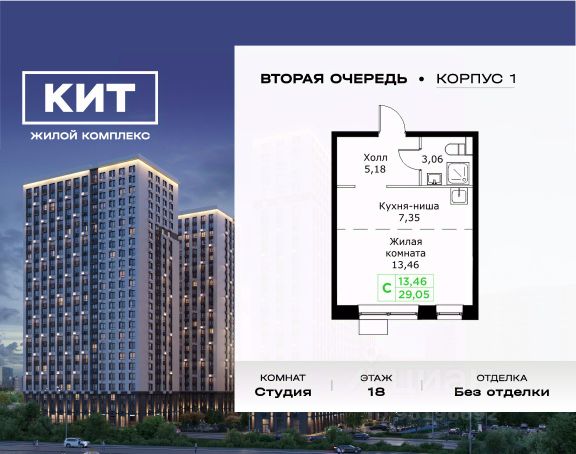 Продаётся студия 25.64 кв.м. без отделки в ЖК "КИТ2" на 19-м этаже 25 этажного дома.Жилой комплекс "Кит 2" спроектирован в урбанистической концепции "Город в Городе". Объект бизнес-класса предлагает рациональный подход к набору опций, необходимых для гармоничной жизни. Проект представляет собой два корпуса, которые образуют единую приватную территорию. Ее доминантой является двор с красивым ландшафтным дизайном и различными зонами, ориентированными на интересы жителей разного возраста. При создании пространства в приоритет ставился комфорт жителей. В шаговой доступности находятся: торговый центр, рестораны, кинотеатры, спортивный зал, образовательные учреждения и множество других объектов в сфере услуг. Преимущества проекта: - 3 корпуса для приватной жизни - Видовые характеристики (просматриваются Москва - Сити и Останкинская телебашня) - Широкая квартирография по всем типам квартир - Увеличенное остекление - 3 варианта отделки: БОРДО, СТОКГОЛЬМ, ОСЛО - Богатая развлекательная инфраструктура - Высокий уровень безопасности территории Расположение комплекса: - 2,2 км до Волковского шоссе - 2,8 км до Ярославского шоссе - 5,7 км до МКАД - 5 минут пешком до ж/д станции "Мытищи" и Автовокзала - 18 минут до станции метро "Комсомольская" - 30 минут до станции метро "Медведково"