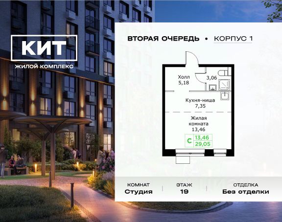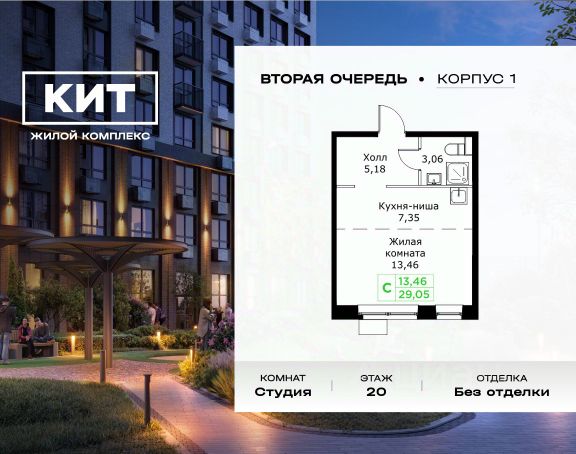 Продаётся студия 28.21 кв.м. без отделки в ЖК "КИТ2" на 10-м этаже 25 этажного дома.Жилой комплекс "Кит 2" спроектирован в урбанистической концепции "Город в Городе". Объект бизнес-класса предлагает рациональный подход к набору опций, необходимых для гармоничной жизни. Проект представляет собой два корпуса, которые образуют единую приватную территорию. Ее доминантой является двор с красивым ландшафтным дизайном и различными зонами, ориентированными на интересы жителей разного возраста. При создании пространства в приоритет ставился комфорт жителей. В шаговой доступности находятся: торговый центр, рестораны, кинотеатры, спортивный зал, образовательные учреждения и множество других объектов в сфере услуг. Преимущества проекта: - 3 корпуса для приватной жизни - Видовые характеристики (просматриваются Москва - Сити и Останкинская телебашня) - Широкая квартирография по всем типам квартир - Увеличенное остекление - 3 варианта отделки: БОРДО, СТОКГОЛЬМ, ОСЛО - Богатая развлекательная инфраструктура - Высокий уровень безопасности территории Расположение комплекса: - 2,2 км до Волковского шоссе - 2,8 км до Ярославского шоссе - 5,7 км до МКАД - 5 минут пешком до ж/д станции "Мытищи" и Автовокзала - 18 минут до станции метро "Комсомольская" - 30 минут до станции метро "Медведково"