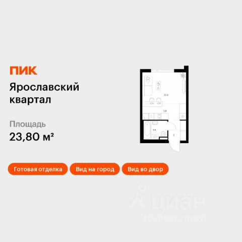 Продаётся квартира-студия площадью 20,1 кв.м на 10 этаже 25 этажного дома (Корпус 2.2, Секция 1) проекта ПИК Ярославский квартал. Светлый просторный подъезд на уровне земли, функциональная планировка, большие окна, c отделкой. Проект "Ярославский квартал" возводится в Мытищах, в 6 км от МКАД. Жилой квартал, состоящий из 8 корпусов, строится рядом с Ярославским шоссе и имеет удобный заезд с крупной автомагистрали. На территории проекта появится школа, детский сад и пешеходный бульвар. Индивидуальные дизайны фасадов для "Ярославского квартала" разработало петербургское архитектурное бюро RHIZOME. В их портфолио вошли работы для Московского музея современного искусства, ГЦСИ, Манифеста 10 и ЦВЗ Манеж. За 7 минут можно дойти пешком до ближайшей автобусной остановки. Столько же займёт дорога до "Лосиного острова" - облагороженного парка с разными активностями для всей семьи, благоустроенными зонами для отдыха, местами для прогулок и пробежек на свежем воздухе. Доехать на автомобиле до Ярославского шоссе получится за 3 минуты, до станции "Мытищи" - за 9 минут, до МКАД - за 15 минут. Артикул 1013141 (Застройщик ООО "Специализированный "ГЕОПАРК")