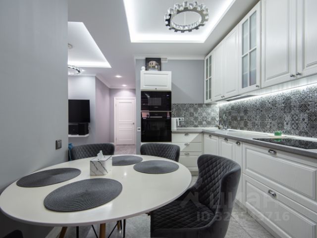 На кухне встроена лучшая техника, большой двухстворчатый холодильник с лед-генератором, встроенный фильтр очистки воды с отдельным краном для питьевой воды, литая столешница с раковиной из искусственного камня.