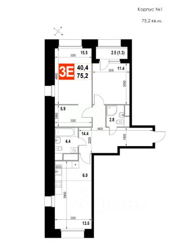 Продаётся 3-комнатная квартира в строящемся доме (Корпус 1), срок сдачи: I-кв. 2026, общей площадью 75.2 кв.м., на 3 этаже. Многоквартирный жилой дом со встроенно-пристроенными нежилыми помещениями и автостоянкой