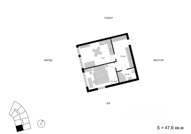 Продаётся 2-комнатная квартира в строящемся доме (Корпус 1), срок сдачи: I-кв. 2026, общей площадью 47.6 кв.м., на 8 этаже. Многоквартирный жилой дом со встроенно-пристроенными нежилыми помещениями и автостоянкой