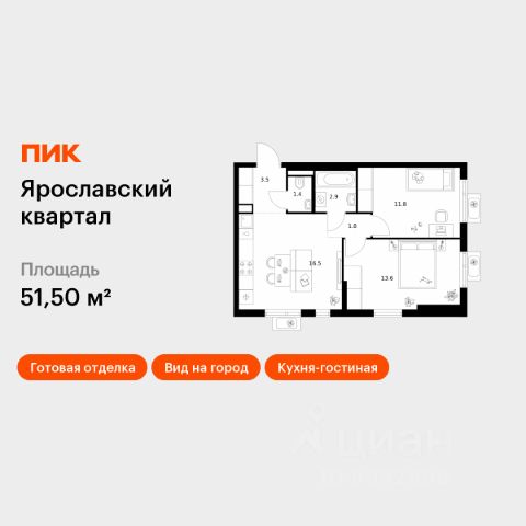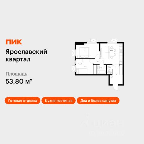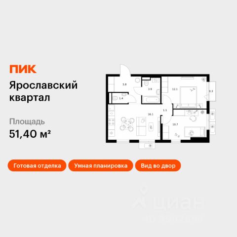 Продаётся 2-комн. квартира площадью 51,5 кв.м на 5 этаже 25 этажного дома (Корпус 2.2, Секция 1) проекта ПИК Ярославский квартал. Светлый просторный подъезд на уровне земли, функциональная планировка, большие окна, c отделкой. Проект "Ярославский квартал" возводится в Мытищах, в 6 км от МКАД. Жилой квартал, состоящий из 8 корпусов, строится рядом с Ярославским шоссе и имеет удобный заезд с крупной автомагистрали. На территории проекта появится школа, детский сад и пешеходный бульвар. Индивидуальные дизайны фасадов для "Ярославского квартала" разработало петербургское архитектурное бюро. В их портфолио вошли работы для Московского музея современного искусства, ГЦСИ, Манифеста 10 и ЦВЗ Манеж. За 7 минут можно дойти пешком до ближайшей автобусной остановки. Столько же займёт дорога до "Лосиного острова" - облагороженного парка с разными активностями для всей семьи, благоустроенными зонами для отдыха, местами для прогулок и пробежек на свежем воздухе. Доехать на автомобиле до Ярославского шоссе получится за 3 минуты, до станции "Мытищи" - за 9 минут, до МКАД - за 15 минут. Артикул 1013068 (Застройщик ООО "Специализированный "ГЕОПАРК")