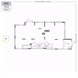 Площадь от 104,8 кв. м до 308,6 м2, корпус 2, первый этаж, 1 вход с улицы, 1 вход со двора. Центральное местоположение, рядом с ТЦ, к помещению есть свободный подъезд и напротив входа есть стихийная парковка. Высота потолков 5,4 м, выделенная мощность - 0,2кВт/ м2...