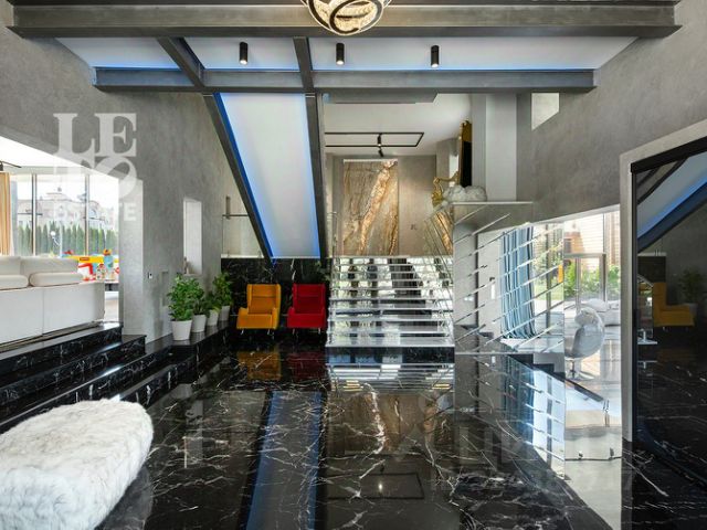 Внутри дома во всех помещениях выполнена дорогая высококачественная отделка, установлена вся необходимая мебель и бытовая техника, от ведущих мировых производителей, выполнена система приточно-вытяжной вентиляции, с установкой современного дорогого оборудования, установлено все необходимое оборудование для бассейна, в том числе противоток и подводная беговая дорожка.