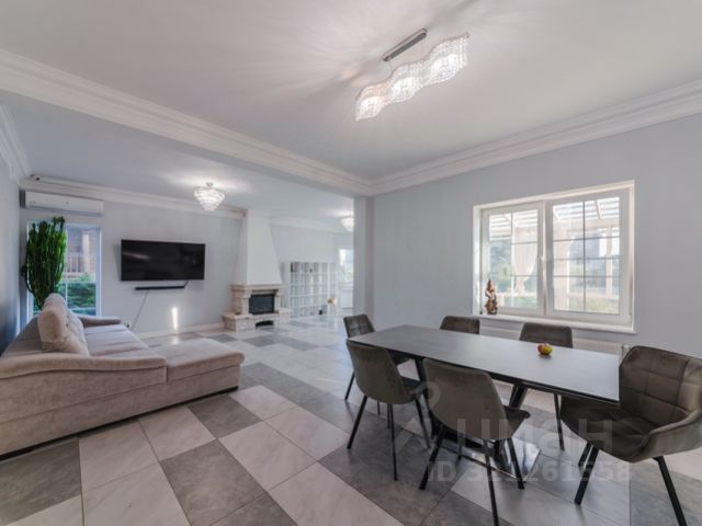Основной дом 560 кв.м: 4 спальни, кухня, столовая-гостиная, гостиная с камином и вторым светом, кабинет, спортивный зал, гараж на 2 м/м со стеклянными воротами. Гостевой дом 126 кв.м: 3 спальни, 2 с/у, кухня - гостиная, гараж на 1 м/м.