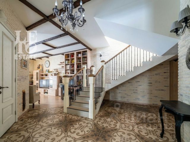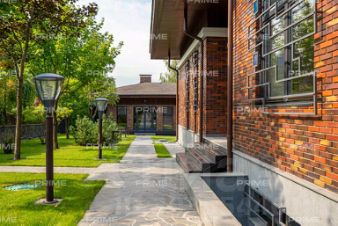 Двухэтажный, кирпичный очень просторный дом с высокими потолками, рассчитан на комфортное проживание большой семьи: два больших холла, обширные: гостиная, кухня столовая и веранда; семь спален, пять из которых имеют свои санузлы; кабинет, постирочная, гостевой туалет, зона барбекю, подвал и гараж. Полы в спальнях из дубового паркета, в остальных помещениях керамогранит или напольная плитка. Окна стеклопакеты.
