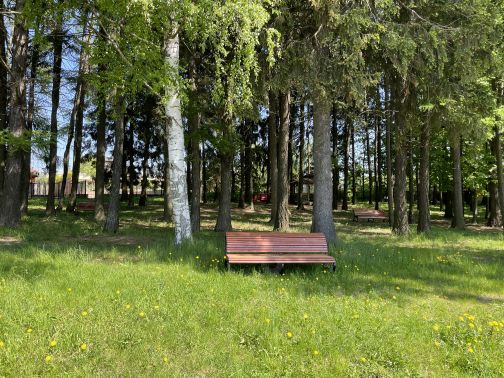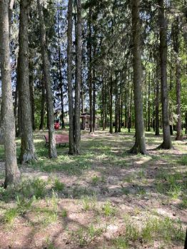 На участке выполнен ландшафтный дизайн, высажены многолетние деревья и кустарники, установлено вечернее освещение и автополив.