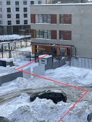 Удобно расположен корпус дома с входной группой со стороны дороги, откуда заезд в комплекс и пешеходной зоной через проходную часть, где вход в помещение.