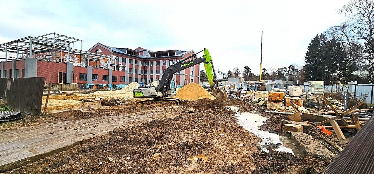 На данный момент ведутся работы по подведению коммуникаций и установка стеклопакетов.