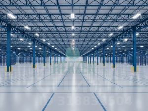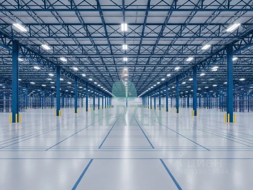 Ровный бетонный пол с антипылевым покрытием. Допустимая нагрузка на пол 6 т/м2.