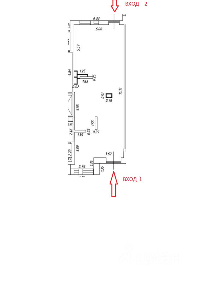 2 отдельных входа, витринные окна (с двух сторон), высота потолка около 5 м.