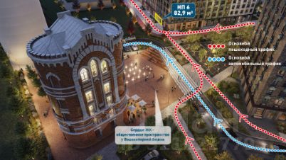 Дополнительным центром притяжения ваших посетителей станет сердце жилого комплекса - уникальное общественное пространство, которое будет создано вокруг отреставрированной водонапорной башни XIX века прямо напротив вашего помещения.