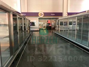 В торговом зале зал расположены входная, кассовая и торговая зона, а также три холодильные камеры площадью 420 м²: две среднего холода (+2+4С) и одна низкого холода -18-22С.
