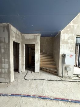 На данный момент возведены основные перегородки и произведена штукатурка стен