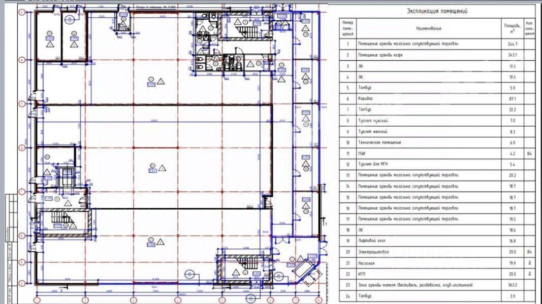 Основную площадь первого этажа планируется занять под размещение продуктового супермаркета. Помимо этого, рассматриваются арендаторы из следующих сфер: