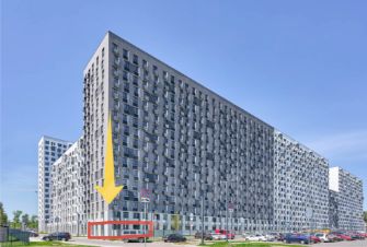 1-я линия домов, выход на центральную часть главной аллеи проекта, на которых будет сосредоточен основной пешеходный и автомобильный трафик всего ЖК