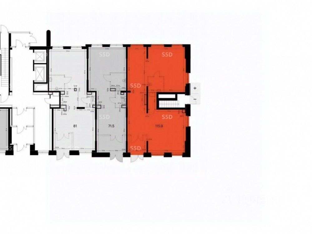 К аренде предлагается помещение свободного назначения в ЖК "Яуза Парк", улица Колонцова, 2Бк1, площадью 115.9 кв. м, расположенное на первом этаже 25-этажного жилого дома.