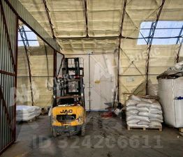 Основные характеристики объекта включают площадь 659 м² и высоту потолков от 6 до 9 метров, что обеспечивает вместительное складирование. Пол выполнен из бетона с антипылевым покрытием (топпинг) и рассчитан на нагрузку до 6 тонн на квадратный метр. Для удобства погрузочно-разгрузочных работ оборудован грузовой пандус на высоте 1,20 метра. Помещение полностью обеспечено необходимыми коммуникациями: подключены вода и канализация. Система отопления реализована с помощью тепловентиляторов, а само помещение утеплено напылением пенополиуретана толщиной 5070 мм.