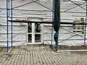 В настоящий момент заканчивается утепление и отделка фасада здания, единый стиль с отремонтированным зданием театра.