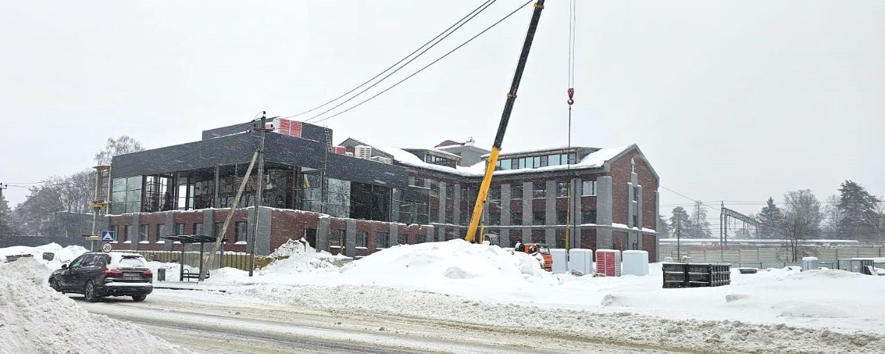 На данный момент ведутся работы по подведению коммуникаций и установка стеклопакетов.