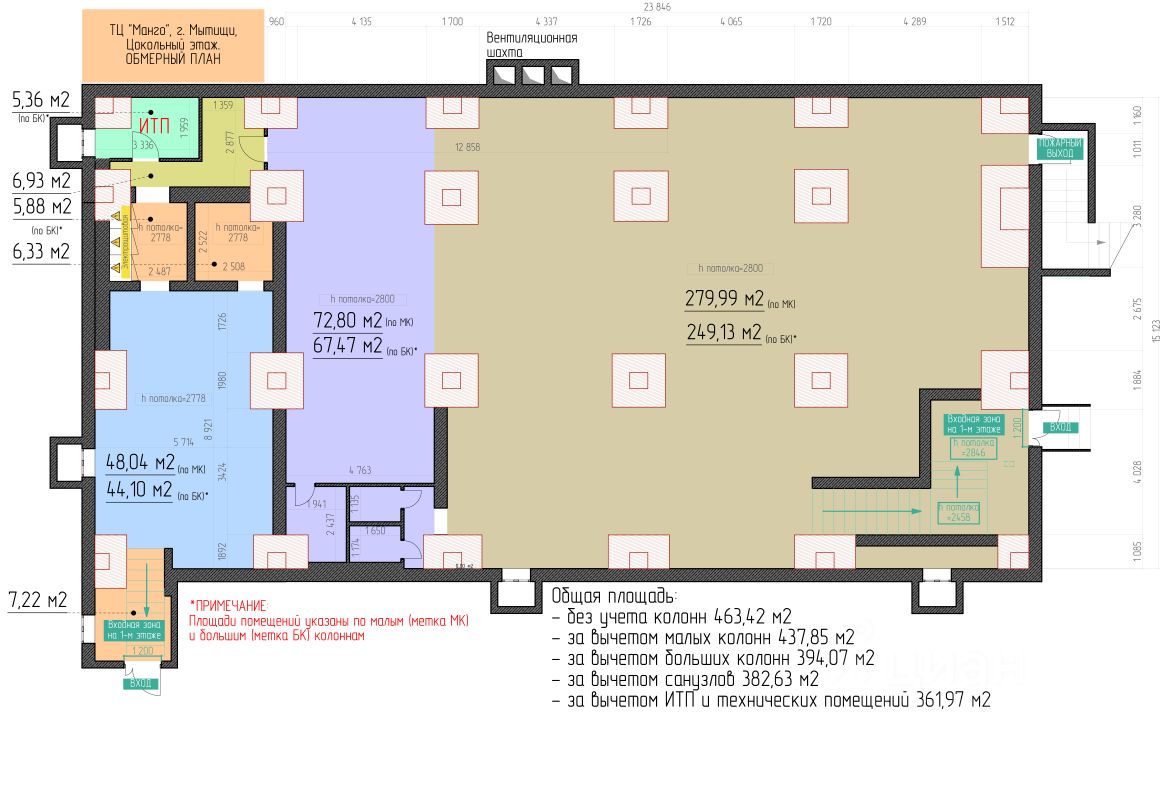 Цокольный этаж, помещения с ремонтом, с вентиляцией, 2 гостевых туалета, плюсь туалет с душем для персонала.