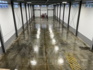 Пoлы-антипыль, монолит плита + промышленная стяжка (топинг). В каждом здании установлены ворота с подъемными механизмами по 2 шт, габаритные размеры (3, 6 х 4 м).
