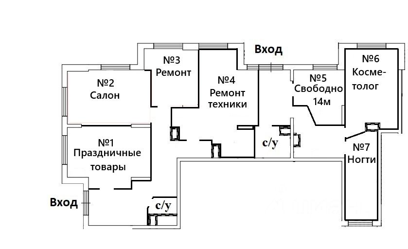 Прямая аренда 14м². Кабинет 5 (С РЕМОНТОМ !!!) 1 этаж, 1-2 линия.