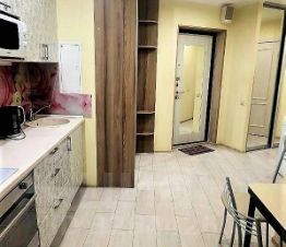 Описание помещения: кух.гарнитур, холодильник, стеклокерамическая панель, духовой шкаф, микроволновка, TV, шкаф.