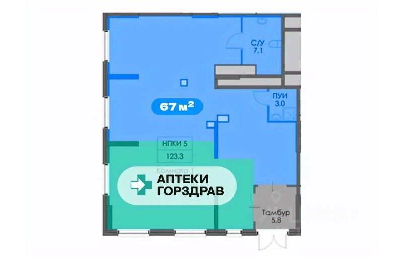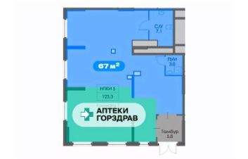 Окружение : во второй части помещения подписан горздрав, в соседнем подписан Вкусвилл