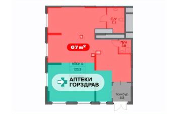 - Площадь: 67 м²