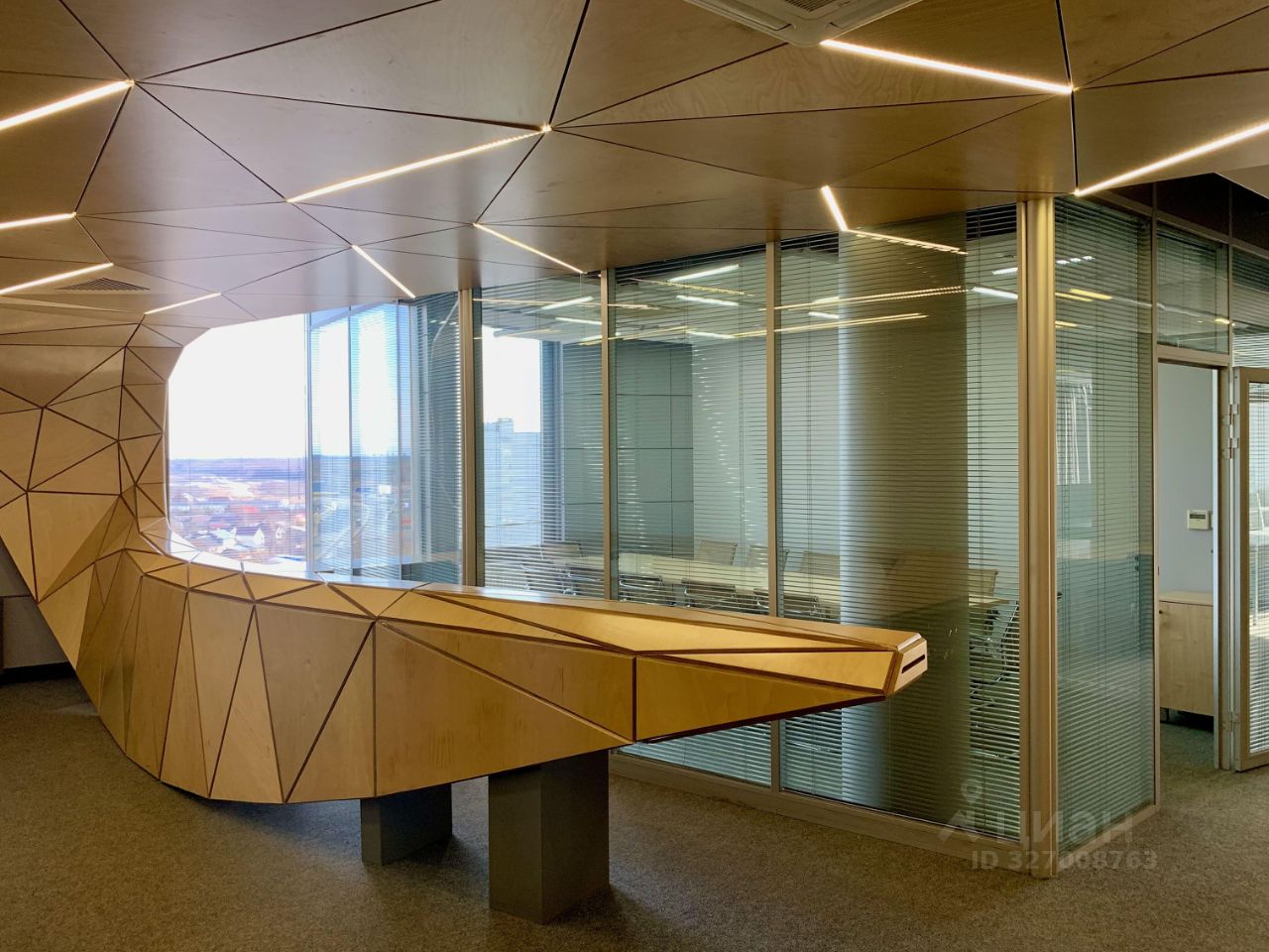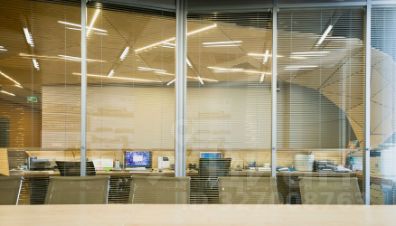 Стеклянные перегородки со встроенными жалюзи.