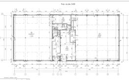 По проекту здание поделено на две части с отдельными входными группами под каждое направление деятельности. Низкая часть здания по проекту авто мойка на 6 постов, высота потолков 5.5 метров, высокая часть здания планируется под автосервис на 8 постов, высота потоков 8.5 метра.