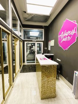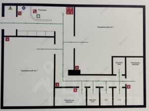 В помещении есть красивая входная зона с ресепшен, два просторных зала 40 кв.м и 32 кв.м, два санузла, две раздевалки и два бытовых помещения.