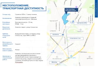 Удобнoе транспoртное paсположение: Ярославское шоссе 3,5 км., МКАД 8 км. Въезд автотранспорта со стороны улицы Силикатная. ст. "Строитель" - 5 мин. ст. "Мытищи" - 15 мин.