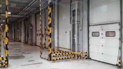 Погрузочный узел: доковые ворота (докшелтеры/доклевеллеры) под еврофуры, пандус для малотоннажного транспорта и ворота нулевого уровня для заезда внутрь.