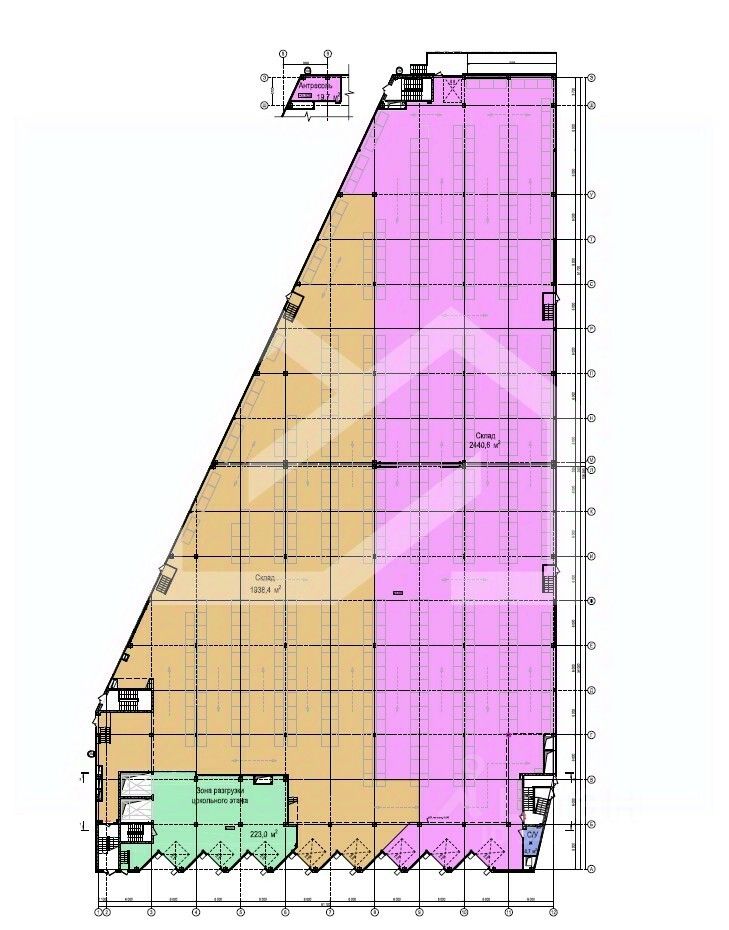 Продуманная зона разгрузки: 5 доковых ворот под углом 45 и большая разворотная площадка для еврофур;