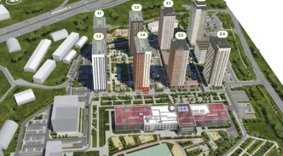 -В ЖК запланировано 9 корпусов, 2800 квартир , детский сад и школа.