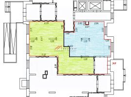 Помещение 113 м2 располагается на 1 этаже, имеет открытую планировку, отдельный вход со ступеньками с фасада, высоту потолка 3.4 м, витринные окна по фасаду на две стороны дома. Электрическая мощность 30 кВт. Место для размещения рекламы на фасаде. Вход в помещение расположен напротив общедомовой парковки.
