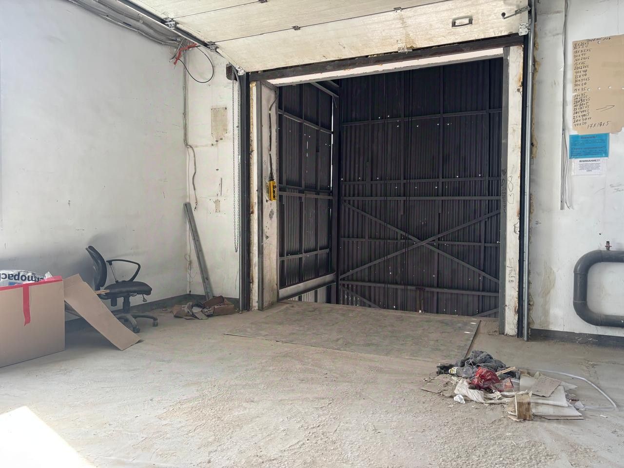 Два подъёмника на 6т и 3т соответственно, пандус и ворота на нулевом уровне 3x4м.