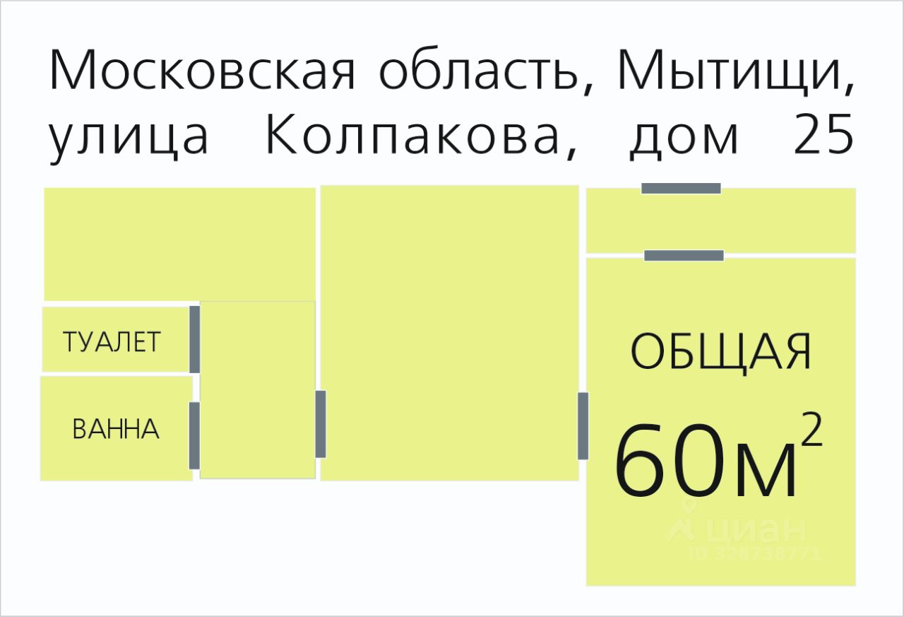 Площадь 60 кв. метра.