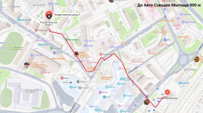 До Автовокзала Мытищи 900 м, удобный выезд на Ярославское шоссе -5мин, Мытищинскую хорду, 6 км до МКАД. 15 мин на автомобиле до МЦК Ростокино, ст.метро Бабушкинская, Медведково.
