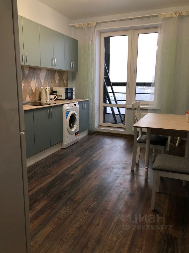 В квартире имеется всё необходимое для комфортного проживания: кухонный гарнитур, холодильник, стиральная машина, кровать и диван, СВЧ - печь.