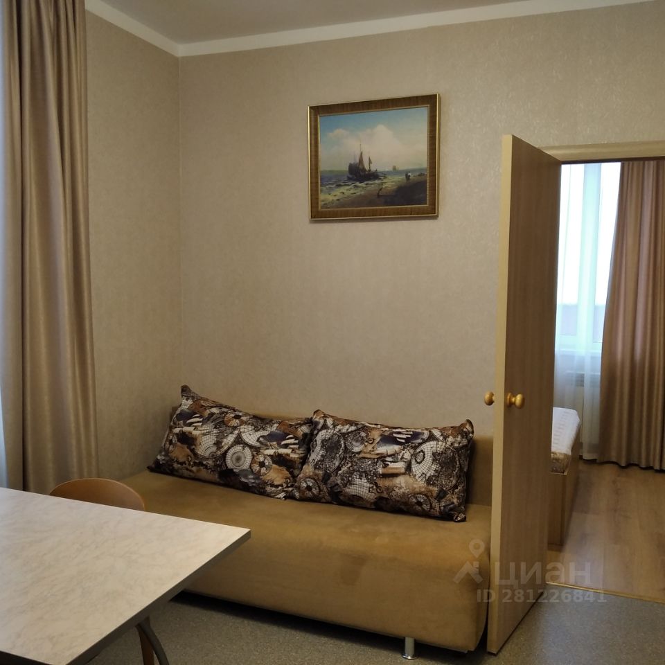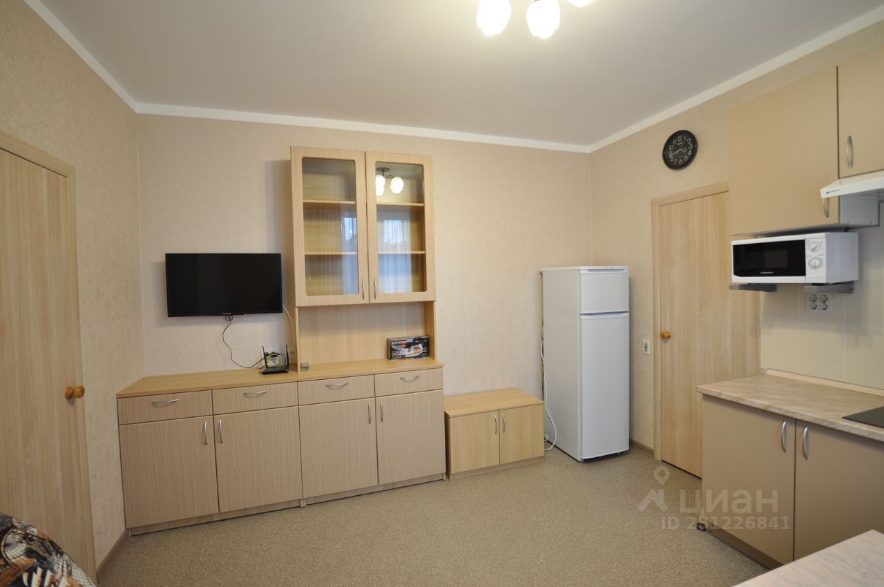 Сдается чистая полностью меблированная квартира-студия с одной спальней (евродвушка). Она состоит из: прихожей с шкафом-купе, санузла с душем, собственно студии 14 м2 с кухонной частью: встроенная кухня, варочная с.к панель, СВЧ, холодильник, столом, диваном и телевизором. Из студии проход в спальню 12 м2 с двуспальной кроватью, еще одним шкафом-купе.