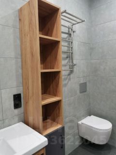 Квартира с современным ремонтом: в ванной керамогранит, тропический душ, нишы для хранения, унитаз с инсталляцией, система защиты от протечек.