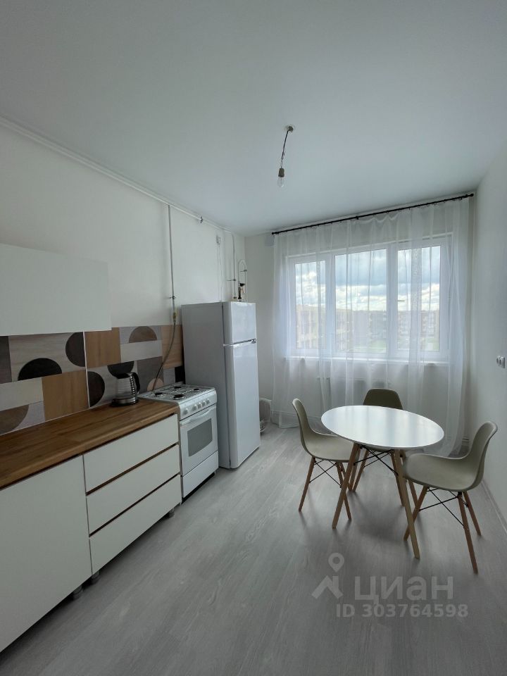 В кухне газовая плита с электрическим духовым шкафом. Обеденный стол, стулья. Новый холодильник. Кухонный гарнитур .